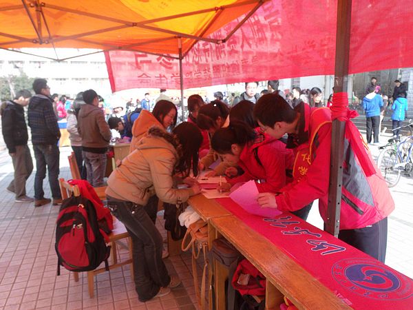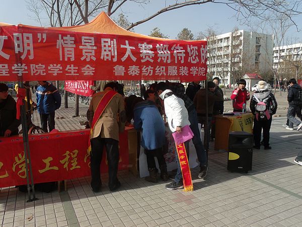 “告别陋习 握手文明”系列活动是由校学生会主办的大型校园品牌活动。此次情景剧大赛作为学校第六届“告别陋习 握手文明”系列活动的重要组成部分,受到我院高度重视。为打造舆论效应, 宣传工作历时三天,由我院与鲁泰纺织服装学院共同组织,可谓持续时间长、参与力量多、宣传力度大。宣传现场两院同学密切合作、协同配合,搬桌子、支帐篷、挂条幅等各项准备工作有序开展,有效保障宣传活动的效果。宣传人员细致的向同学们讲述活动的流程、意义,同时积极呼吁同学们加入文明修身行列。现场同学们也表现积极,踊跃报名。据悉此次比赛包括ppt展示、情景剧表演两部分,决赛将在3号楼报告厅向全校师生呈现。