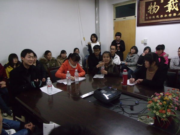 4月10日晚,在我院团总支的组织下,我院09级学生申燕芝、段双双、朱盼云在13号教学楼五楼会议室就切身参与“中国石化——三井化学杯”化工设计竞赛经验与我院10级部分学生面对面分享、交流。
