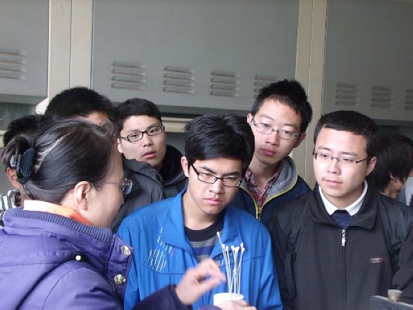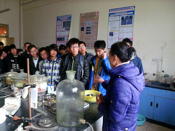 此次活动,有幸邀请到了我院硕士生导师孟波教授,由她带领同学们参观并进行全程讲解。活动伊始,孟教授首先向同学们介绍了她的两个主要科研项目,并展示了自己科研成果。随后孟老师又对一些化学实验室设备的使用方法和用途进行了细致地讲解,让同学们开拓了眼界,受益匪浅。同时,在参观的过程中孟教授还不时地向同学们提出一些启发性的问题,引导同学们进行创造性的思维。最后,孟教授与大家亲切的合影留念并且鼓励有兴趣的同学多到实验室参观。