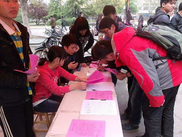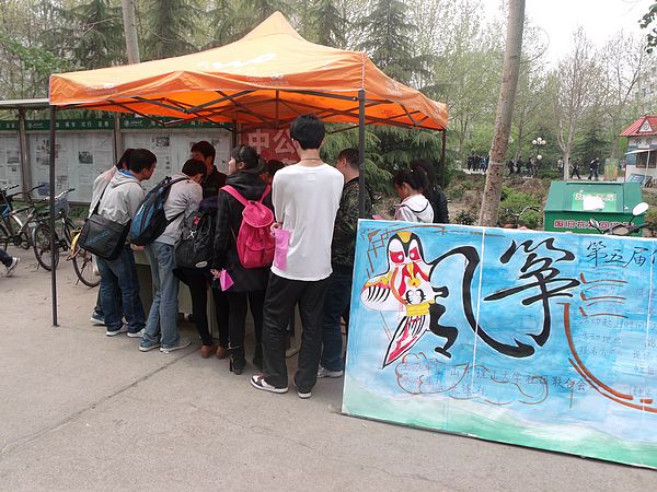4月23日中午,由我校社团联合会主办、先锋社承办的第五届“化工杯”风筝大赛初期宣传活动在西校区第二、三餐厅进行,先锋社相关负责人参加活动进行宣传。