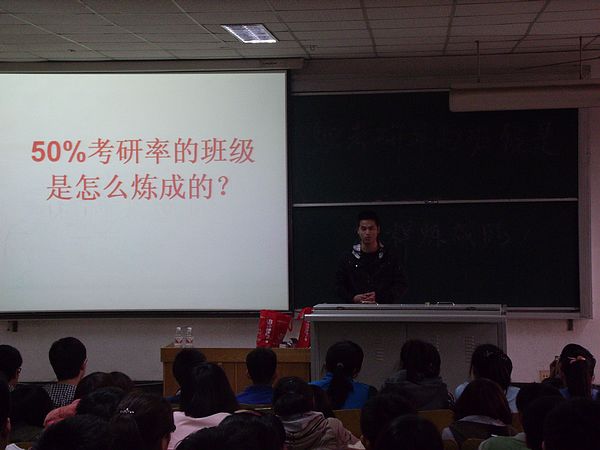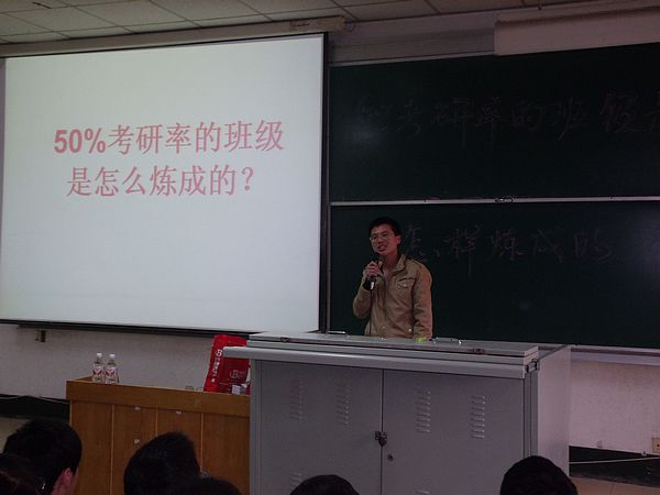 会议伊始,郭洪涛以其幽默风趣的讲台风格活跃了现场气氛,同时对两位同学的到来表示欢迎和感谢。他就当下的就业形势和社会环境为切入点,抛砖引玉,引出庞成凯的演讲。庞成凯就自己考研路上所遇到的挫折和欣喜与大家交流。他说考研这一年半的准备让他养成了许多终生受益的好习惯,懂得了与人交流合作的重要性,要有踏踏实实、勇往直前接的信心与决心,这也是他认为自己能够坚持学习的“法宝”。比起庞成凯朴实无华的演讲,郭东强则为大家展示了一个独特风格的班委。他对前三年的迷茫表示追悔,深有体会的说要想到什么就立即去付诸以行动,切莫错过了机会,虚度了年华。然后从家庭、责任方面去阐述自己的考研观点,他说这是一个有上进心的男子汉所应该具有的品质,鼓励大家坚定自己的理想,思考人生,做一个充满正能量的人。两位同学的激情演讲与在场同学产生共鸣,不时传来热烈的掌声。