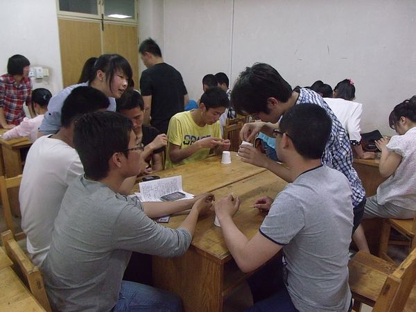 比赛开始,主持人详细介绍了此次比赛的规则和评分细则,为吸引同学们的兴趣,比赛分为土电话制作,手机自主贴膜和“无极限”文字编辑等系列趣味环节。在土电话制作环节中,每位参赛选手亲自动手制作土电话,然后拿到403教室进行测试,测试时由工作人员从10首歌曲中随机播放5首,听出一首得一分,由于都是熟悉的歌曲,测试环节普遍都能通过。同时401教室进行手机自主贴膜比赛,尽管之前同学们都没有进行过训练,但是从画边框,到割膜、贴膜,每位参赛选手都认认真真,仔仔细细,认真程度毫不亚于专业人员。计时结束后,评委就膜与手机的匹配程度,是否起泡对各组打分。“无极限”文字编辑环节可谓是最激动人心的,由每组选出一个代表在一分钟之内打出评委给出的文字,计时结束后根据打字的多少计分。计时开始后,现场一片加油呐喊声,比赛选手充分发挥自己的打字能力,但还是有的紧张,手在发抖,有的组能够达到50个字。比赛最后,工作人员统计总分,据悉,第7、10、11组获得一等奖。
