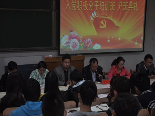 11月1日上午,我院在4号教学楼106教室举行入党积极分子培训班开班典礼,院党总支书记董云会,党总支副书记李冰强,辅导员亓鹏、郭洪涛、于珊参加会议,院团总支书记廖君华担任主持。