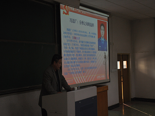 李冰强从建党前的中国国情讲起,描述了没有共产党前的中国所受的屈辱,随后他以建国、立业、兴业为基本脉络,用幽默生动的语言讲述了党发展的艰辛历程,从南昌起义讲到长征,从八年抗战讲到解放战争,从社会主义改造建设讲到改革开放。听课的各位同学表情专注,完全沉浸在了授课人所描述的故事中。他不时穿插的伟人所用方言讲过的话,引发了同学们的阵阵掌声,整个课堂活泼欢快,气氛热烈非常。