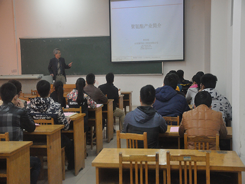 据悉,该公司是一家生产聚氨酯的企业。宣讲会上,杜宗宪先生首先向同学们介绍了聚氨酯的反应原理、工艺流程及它的应用范围,生动而不失深刻的语言让同学们对聚氨酯的产品特性有了基本了解。在随后约一个小时的宣讲中,杜宗宪先生运用大量的数据统计向同学们阐释了聚氨酯产业的发展情况,展现了聚氨酯产业的良好前景。在对产品做了详细的说明后,杜宗宪先生又介绍了产业所未解决的三大问题:防火性、硬度的加强及可持续性,并希望同学们在今后的工作学习中能解决这些问题。最后,杜宗宪先生介绍了公司的发展历史及现状,并欢迎同学们前来工厂参观,对公司做进一步的了解。