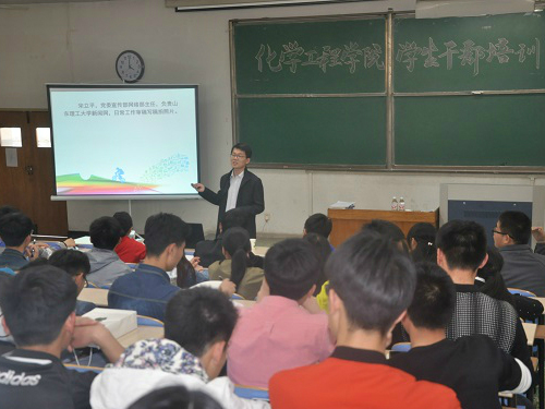 3月31日下午,我院于4号教学楼103教室举行学生干部培训会,会议以“何以爱新闻”为主题,由校党委宣传部网络部主任宋立平为我学院全体学生会成员详细讲述新闻写作方法以及摄影技巧。辅导员亓鹏参加此次会议并做会议总结。此次大会旨在教授学生干部新闻写作、摄影的要点与投稿的注意事项,通过新闻的写作来发挥媒体在日常工作中的积极作用。