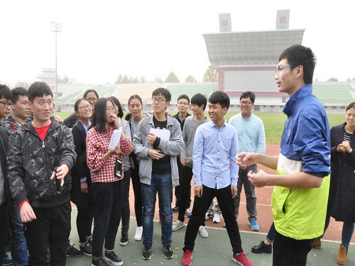 活动伊始,同学们以小组为单位有序到达活动场地,由学习部负责人讲解游戏规则。随后,在负责人的安排下进入第一轮游戏——趣味接力。游戏开始,两个小组同时进行,一号同学竭尽全力,奋力冲刺,在50米跑道上划过一道优美的弧线,二号同学与之拥抱后,迅速扎破气球,拿起纸条,全力奔跑,与三号同学拥抱,工作人员根据纸条分值选出相关心理题目,三号同学全神贯注,努力思考,然后作答,待工作人员给出分值后,四号同学如风一般跑回起点处。在该游戏中,同学们积极热情,团结合作,共同奋斗,增进了彼此间的友情。接下来是心有灵犀——第二轮游戏,第一位同学先跳绳50个,再选出一张标有路线的卡片,由第二位同学按照指示走过相应路线。将活动推向高潮的是接着进行的“你来比划我来猜”环节,第三位同学尽力比划自己所看到的词语,第四位同学则根据比划内容和自己想象尽可能猜出答案。“这次活动让我看清了自己的内心世界,也让我明白与人合作的重要性,今后,我一定会加强与他人的合作交流。”活动结束后,一位同学这样感慨。