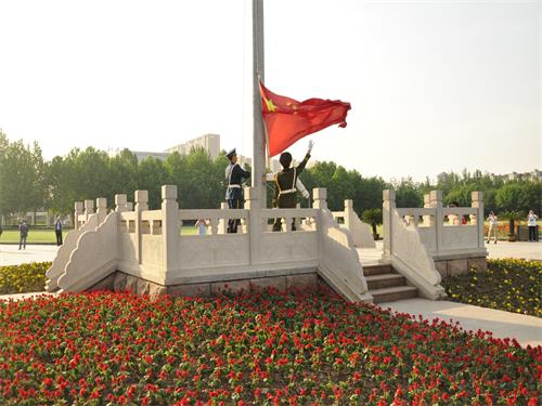 为迎接“党的十九大”的召开,贯彻“一学一做”的精神,弘扬爱国主义情怀,5月15日早上,我院于鸿远楼前举行升国旗仪式,我院党总支书记董云会、党总支副书记李冰强出席此次升国旗仪式,团总支书记廖君华、辅导员亓鹏、于珊、类延东以及15、16级全体学生参加此次升国旗仪式。