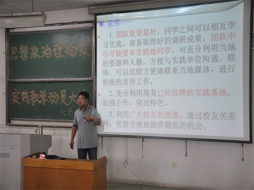 6月21日上午,我院在5号教学楼201、203教室举行思想政治理论课实践教学动员大会,此次动员会由马克思主义学院负责老师王钦广、张霞担任主讲人,我院辅导员亓鹏和大二全体学生参加此次会议。