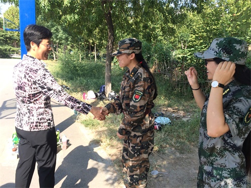 九月军装绿,新生军训忙。为进一步了解我院新生军训实际情况,并给学子带去慰问与鼓励,我院党总支书记陈靖、院长禚淑萍、党总支副书记李冰强、副院长王平、杨乃涛、团总支书记曹晓媛,辅导员王菲来到军训场地看望正在军训的新生,并与教官和学子进行亲切交流。