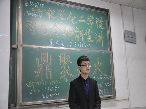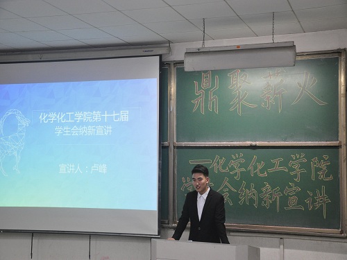 为吸纳更多优秀人才,为学生会注入新鲜血液,9月23日晚,我院在5号教学楼101、103教室召开化学化工学院学生会纳新宣讲会。参加此次宣讲会的有我院学生会主席团成员、各部门部长以及全体大一新生。