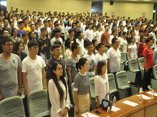 伴着庄严宏伟的国歌,见面会正式拉开序幕。会议伊始,院长禚淑萍发表讲话,她首先对17级新生的到来表示欢迎,祝贺他们历经严格的军训洗礼,通过大学的第一堂必修课。随后,她对学院进行简单介绍,感谢在座的同学选择了化学化工学院,并要求同学们能清楚的明白上了大学后要成为什么样的人,并为之不懈努力,实现角色、态度以及行为上的转变。同时,她希望同学们能树立爱校荣院意识,共同创造化学化工学院辉煌的未来。