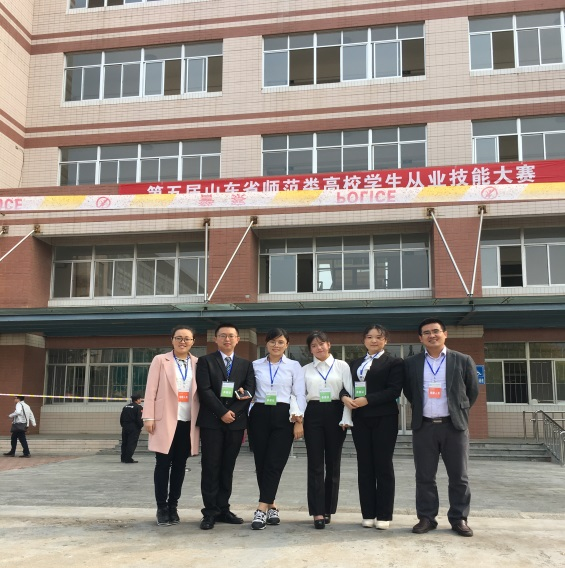 为深入落实《教育部关于做好2017届高校毕业生就业创业工作的通知》,进一步引导高校重视师范类学生教学基本素质和基本能力培养,培养师德高尚、教学理念先进、教学技能扎实的优秀教师后备力量,根据时间安排,10月20日-22日,第五届山东省师范类高校学生从业技能大赛在烟台鲁东大学胜利召开。经过预赛和决赛的比拼,我院2014级师范类毕业生庄昊儒、高亚楠,袁淑瑞、刘羽梦四位同学分别代表初中化学组和高中化学组参赛,邢令宝老师和董丽丽老师作为指导和带队老师一同前往。