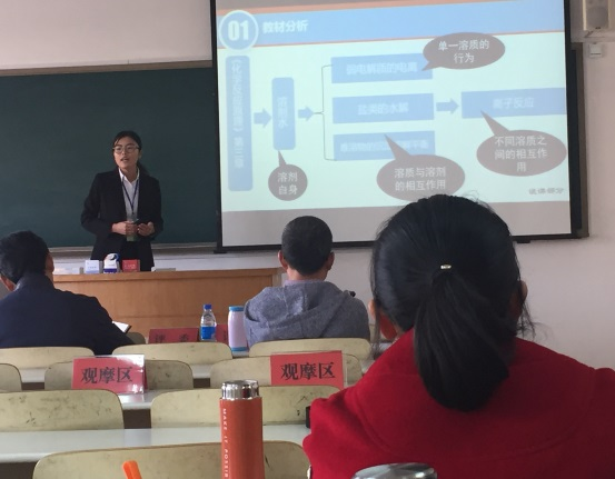 按照大赛的要求,每个学段设置了六个比赛环节,每个环节包括10分钟的说课、15分钟的模拟授课和5分钟的答辩环节,共计30分钟。自9月底开始,在有限的时间内,四位同学结合教育学、心理学、化学教学论的扎实基础和实习的宝贵经验,在熟练掌握了中学化学教材、教师用书、相关习题和视频资料的基础上,从教案编写、教学课件制作、模拟比赛流程等各方面认真钻研、精心准备,下足了功夫。经过两天的角逐,在评委老师的公正裁判下,四位同学超水平发挥,顺利地完成了比赛。其中庄昊儒和袁淑瑞分别获得初中化学推荐组二等奖和高中化学抽取组二等奖的好成绩。