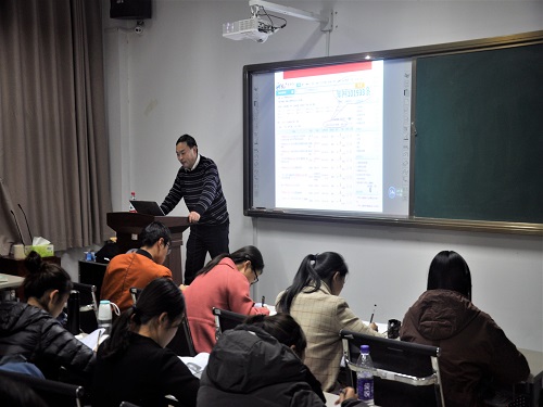 会议首先,卢彦峰对“中国共产党党章”以及“党章对中国特色社会主义的具体描述”进行讲解。他结合35年来(中共12大到中共19大)党代会的主题与党代会中的内容,通过ppt的形式给予展示,并对党代会中“中国特色社会主义”一词出现的频率,同时结合当今时代的主题与主路线,即高举中国特色社会主义与坚持和发展中国特色社会主义,进而强调中国特色社会主义在我国地位。随后,卢彦峰以中共18大、19大为例,对怎么样高举中国特色社会主义这一问题进行了充分讲述。他提到,党对如何高举中国特色社会社会主义提出了新判断、新提法、新要求、新概念、新部署。卢彦峰对每个进行深入剖析,从而使学员能够更加深刻的了解中国特色社会主义的内容。