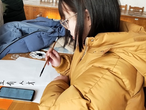 为帮助同学们体会古代书写方式的乐趣,掌握写毛笔字的技能,同时在新的一年到来之际设定今后的努力方向,化学化工学院玉兰社于12月7日下午在十三号教学楼407教室举办“描绘你的未来,争做五有人才”主题系列比赛,玉兰社全体成员参与此次活动,参赛人员是来自各个专业的书法和明信片爱好者。 为保证活动顺利进行,玉兰社成员们在比赛开始前一小时来到教室开始布置场地,成员们各尽其责,有的在黑板上写下优美飘逸的艺术字,有的将提前准备好的宣纸和毛笔整齐地摆放在桌子上,整个准备工作井井有条。紧接着,参赛人员陆续到场,在签到表上签到后,在贴有自己小组编号的桌前坐好。 随即,玉兰社主题系列比赛活动正式开始。主持人致开场词并讲解此次活动的主要内容和比赛规则。比赛伊始,由主持人讲解书法写作技巧,参赛选手认真学习后,开始在宣纸上用毛笔书写自己的大学规划,一开始,同学们用毛笔写字有些生疏,工作人员及时为他们辅导,很快,选手们都基本掌握了书法写作技巧,顺利完成了书法作品。接下来,进入比赛的第二个环节—明信片系列,参赛人员用桌子上备好的彩色卡纸进行明信片的设计,最后,参赛队员一一上台讲解明信片的内容。最后,参赛队员和玉兰社成员对各组的书法和明信片作品进行评分,此次比赛正式结束。 通过此次“描绘你的未来,,争做五有人才”主题系列比赛,同学们为未来设定了努力目标与方向,以切身的感受领悟到“五有”人才的内涵,为争做“五有”人才而努力学习,对以后此类活动的开展有良好的借鉴意义。
