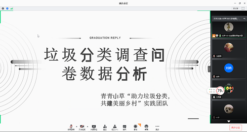调查中发现,村民对于线上的调查都十分热情,积极参与调查问卷的填写。截止下午两点共收集110份调查问卷。结合之前线下调研数据,青青小草“助力垃圾分类,共建美丽乡村”实践团队于当天晚上通过腾讯会议进行调研分析与讨论。