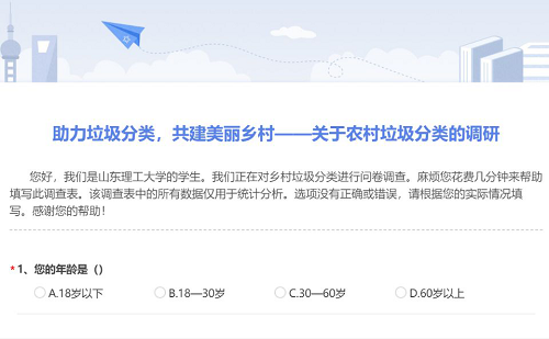 为了更加全面的了解村民对于垃圾分类的态度和现今垃圾分类的开展情况, 8月3日,青青小草“助力垃圾分类,共建美丽乡村”实践团队展开关于对垃圾分类认识的线上问卷调查活动。