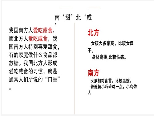 上午九点,同学们进入腾讯会议,由庄新蝶为大家带来多彩地理课程。此次多彩地理课程中,庄新蝶主要讲解关于南北方差异的内容。庄新蝶分别从地理差异、气候差异、农作物种植、方言差异等多方面进行分析。并从饮食习惯中总结出来四个字——南“甜”北“咸”。庄新蝶还讲到:综合所有的差异,就逐渐形成南方人和北方人。最具代表性的就是豪爽的“北方妹子”和温婉的“南方姑娘”。最后,庄新蝶给同学们播放了一篇关于南北差异的视频,让同学们从小事中看到它们的差异。通过这节多彩地理课切实的让同学们意识到地理这门课程充满趣味性。不仅能让大家了解到上下5000年地球表面这些地理位置的变化,还让大家了解到由于这些特殊的地理环境而生成的多元文化现象。