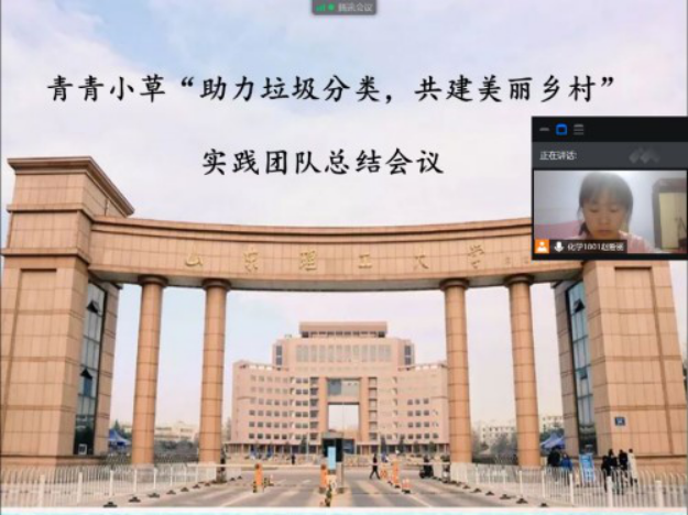 实践时间的结束并不意味着实践的结束。为了更好的整理实践的各方面资料,分享大家的实践感受。于8月6日晚,实践团队通过腾讯会议举行了青青小草“助力垃圾分类,共建美丽乡村”实践团队总结会议。会议由队长赵爱丽主持,团队全体成员参与。