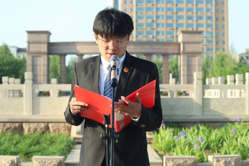 学生会主席进行国旗下主题演讲。他倡导青年学子要扬先辈进取之精神,展青春梦想之风帆,争做“五有”人才。号召同学们勇担时代责任,努力成为有理想、有本领、有担当的新时代大学生。不负韶华,砥砺前进,接好新时代的接力棒,他勉励同学们力学笃行,将青年之火燃成燎原烈焰,不负青春,不负年少。