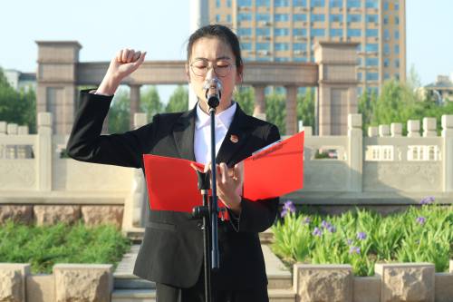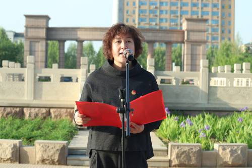 牟海萍发表讲话。她指出,在建党一百周年之际,作为新时代的青年学子应在奋斗中释放青春激情,追求青春理想。她对同学们提出三点要求:一是学党史知党情,坚定理想信念;二是牢记时代责任,勇担历史使命;三是传承红色基因,携笔从戎报国。最后,牟海萍勉励同学们要谨记“厚德、博学、笃行、至善”的校训,发扬团结、拼搏、奉献、互助的精神,自觉树立和践行社会主义核心价值观,做品学兼优的新时代大学生。