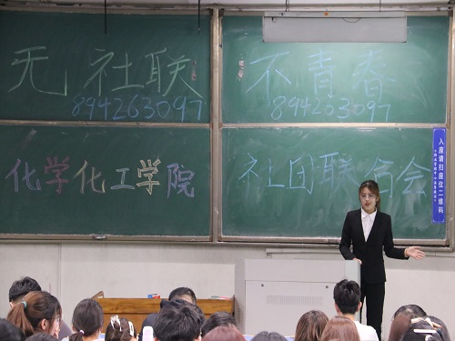首先由各学生组织负责人介绍其下设部门,对该组织工作职能的优势进行概括。再由各部门负责人利用PPT有序明晰的介绍其部门的工作。各学生组织通过视频,增加宣讲的趣味性,吸引同学们的注意,调动同学们加入学生组织的积极性,使同学们更深入直观的了解学生组织。