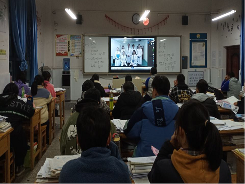 18时30分,回访正式开始,线下宣讲成员在宣讲班级班主任老师的带领下进入教室,结合腾讯会议展开了线上线下相结合的回访模式。首先由队长王晓敏进行团队介绍和宣讲内容概述,学弟学妹对此兴趣浓厚。随后,赵文洁结合高中选课对学校专业特色、创新技术展开讲解,提出高考新政策形势下的专业报考技巧,供大家对高考政策有了更清晰的了解。在一段大学生活短视频播放后,杨玉霞结合PPT对学校历史发展、学习生活、科技活动等展开叙述,提出学校着力培养有社会责任、有创新精神、有专门知识、有实践能力、有健康身心的应用型高级专门人才,涌现出了一大批优秀学子。最后,在播放学校宣传片的同时王晓敏结合学校发展概况、人才培养特色、招生规模等进行招生宣传,充分展现了学校良好的校风校貌,加深了师生对山东理工大学的认识与了解,吸引更多优秀学子报考山东理工大学。