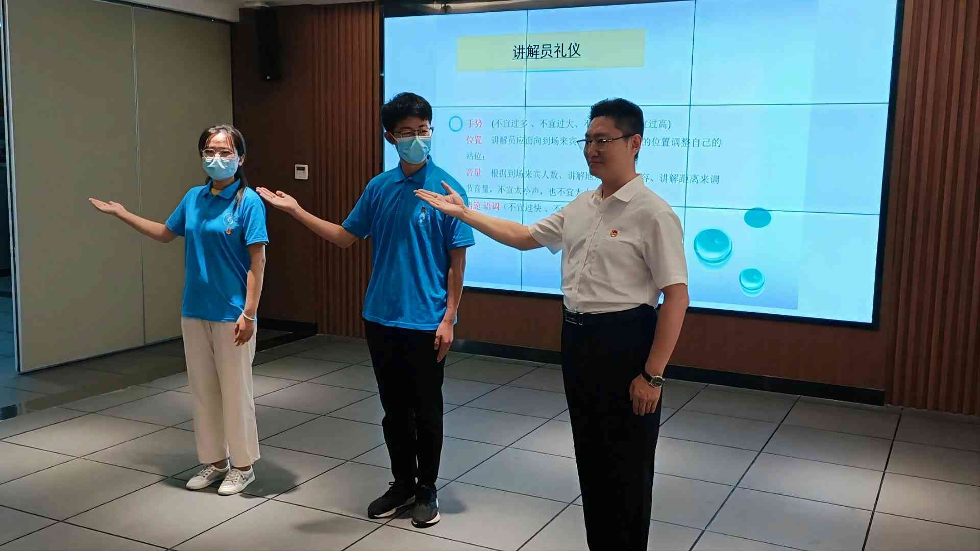 随后,韩喜老师对“昇韵”社会实践团的团队成员进行了讲解员的培训。通过韩老师对实践团成员的培训,实践团成员了解到讲解是知识和语言的综合艺术,是专业性、知识性和艺术性的综合。身为讲解员要求口齿清晰、普通话标准,熟悉展览区专业知识,具备规范的服务礼仪而且是地区的代言人,因此非常重要。除此之外,实践团成员还了解到了什么是“七秒钟”印象。最后,韩老师指出讲解员要展示最好的一面给到大家,讲解员的精髓就是多讲多练。
