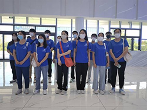 随后,团队成员跟随解说工作人员的脚步参观了东岳氟硅高新技术成果并了解到氟硅材料在日常生活的应用。参观展厅完毕后,由荣婷婷老师带领团队成员前往东岳氟硅材料公司进行实地参观。实践团队成员深入工厂,切身感受东岳企业真实的工作氛围与环境,与公司一线技术员和企业员工面对面交流,并由其带领参观工厂的中控室,中控室内是先进的控制系统,实行先进的数字管控。
