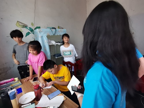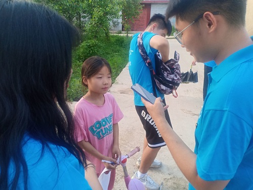 上午九时,团队成员按照分工,详细走访调研实践地中小学生学习情况以及对学习期望的看法。化“献”为“沂”暑期社会实践团成员从分发问卷、采访学生及学生家长,有序的进行采访调研。调研中需要以填写调查问卷的方式来收集他们基本学习情况以及他们是否愿意接受我们的辅导。