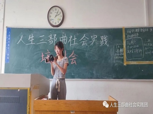 7月7日上午,“人生三部曲”社会实践团在13号教学楼403教室举行培训会,此次培训会由“人生三部曲”社会实践团队长于巾莹主持,团队全体成员共同参与。