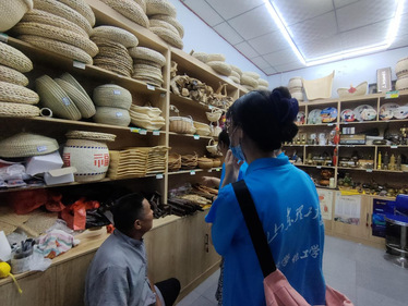 团队成员采访了当地手工艺制品店铺的老板,在采访过程中观察到其主要产品为编织竹筐及其他特色手工艺品,他想我们展示了进口手工艺品与古城周边手工编织的产品的不同,并向我们提到了竹筐的编织手艺,并且他还对如今人们对于特色文创手工艺品的需求说明看法。通过了解我们得知文创产品的需求也激发了一些具有创新力的年轻团队的创业热情,涌现出一批文创企业,他们致力于挖掘青州特有元素,充分考虑市场需求,打造独具特色的品牌文创产品。