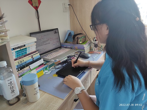 上午九时,左祥瑶和徐帆同时展开教学,分别为高二学生刘同学和初二学生左同学讲解相关英语内容。