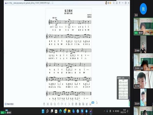 音乐既是感情的语言,又是声音的艺术。向日葵社会实践团将红色歌曲带到音乐课堂上,通过课堂教学,传达爱祖国爱人民的情感。音乐授课队员首先交代歌曲创作背景,使教学过程更加具有感染力,一曲《保卫黄河》气势磅礴,《保卫黄河》写成于抗日战争时期,全曲采用以短促跳动、振奋人心的音调,响亮的战斗口号,铿锵有力的节奏,以快速大跳的动机和逐步扩张的音型,使歌曲充满力量的感情,形象地刻画了游击健儿端起土枪洋枪、挥动大刀长矛,在青纱帐里、万山丛中,为保卫黄河、保卫全中国而战斗的壮丽场景。课堂上,各年级同学积极上台演唱,声音浑厚有力,纷纷展现着自己的爱国之情。