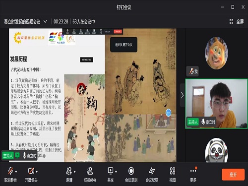 蹴鞠文化起源于春秋战国时期的齐国故都临淄,为山东理工大学所在市,向日葵社会实践团成员结合互联网所查阅资料以及前期蹴鞠文化调研,科学制定“理论学习+趣味实践”授课形式,形成了从认识蹴鞠、足球形成历程、现代蹴鞠发展以及蹴鞠实战系列课程体系。由山东理工大学体育学院秦立时以及仲瑞同学进行授课。足球运动是趣味性、集体性强、竞争激烈,锻炼身体效果明显的一项体育活动,以下为课程内容:回顾上节课所学的足球起源与发展和足球场地示意图,接下来继续学习足球比赛应该注意的服装问题,以及脚内侧传球的动作要领,通过观看相关视频,从中掌握技术要领便于同学们理解,课堂气氛活跃,能做到积极回答问题。
