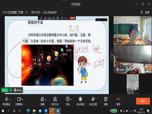 在这次会议上,团队成员对这一周的课程效果和出现的问题开展讨论。首先,随着团队成员与学生之间渐渐熟悉,课堂氛围得到改善、课堂积极性提高,每天进行的课后教学反思使教学能力大幅度提升。但是,由于采取线上授课的形式,再加上临沂市莒南县中心小学的加入,线上支教的人数和教学过程中出现的问题也随之增多:网络卡顿、钉钉课堂人声嘈杂、学生难以管理、部分同学不能进入直播间、课程模式固定化……在本次例会中,团队成员进行跨年级跨学科讨论,思考如何建立课堂秩序、如何创新课程,更好地展示向日葵实践团队的特色。