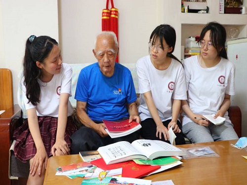 7月21日,“人生三部曲”社会实践团跟随老师的步伐来到老党员家里拜访张元成。平凡的退休老教师张元成,年逾八旬的他,凭借赤子之心成为学生心目中的偶像。