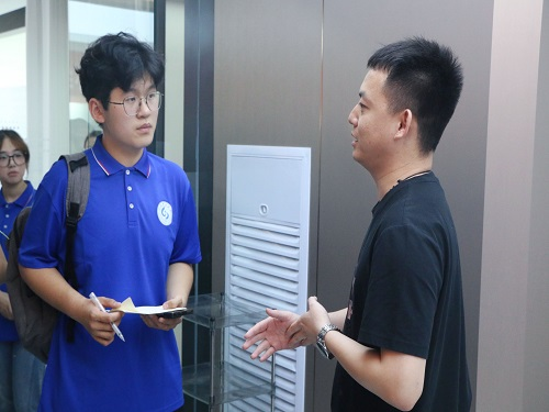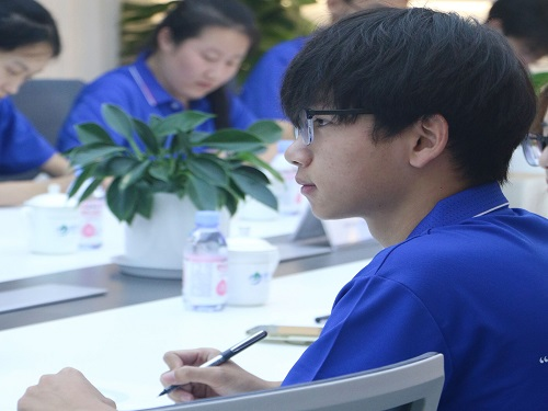 随后,团队成员跟随邱英杰参观公司,进一步了解公司环境。从工程部、商务部和项目部等部门向团队成员逐一展开介绍,主要为各部门的职责以及公司制度文化。邱英杰表示,公司为七小时工作制,弹性的工作时间会满足更多员工的需求。企业着重强调集体荣誉感和人文理念,以“厚道、诚信、开放、包容”作为企业文化,进而能够使员工间建立起更融洽的工作氛围。