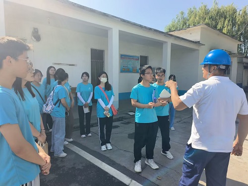 活动伊始,实践团成员带好安全帽。然后,老师向实践团讲解安全防护知识,要求实践团成员关闭手机并进行人体静电处理以防止静电引发事故,保障人身安全。随即,带领实践团参观车间。