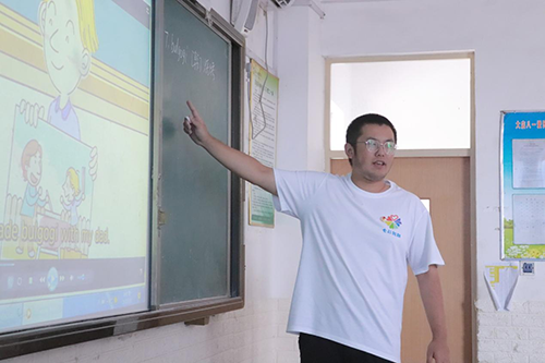 考虑到三年级学生的英语基础,何剡逐字逐句地领读句子和单词,细心的为孩子们解释单词的意思及用法,让其更好地感受英语语感。在何剡的悉心教导下,孩子们能够较为熟练的说出这段英语动画里的台词,甚至可以模仿人物的情绪为动画配音。这种寓教于乐的英语配音的教学方式,很大程度地激发了学生对英语的兴趣,充分体现了英语课程的教学特色。“向日葵”暑期社会实践团成员将趣味英语带给这群渴望知识的孩子们,不仅给予孩子们良好的学习体验,更拓宽了孩子们的视野,为孩子们带来了温暖和希望。