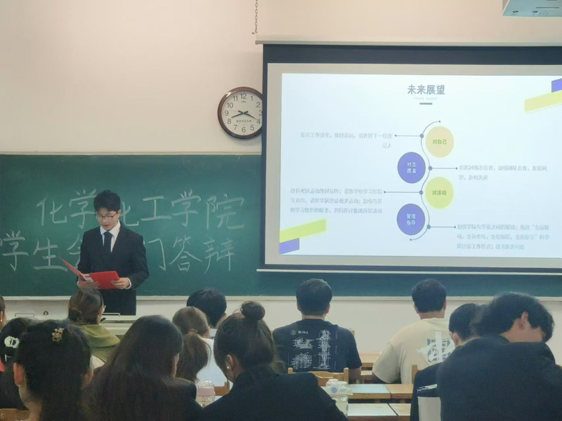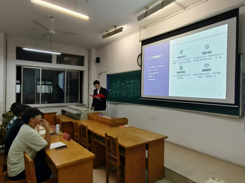 为加强学生会组织建设、提高学生会成员工作能力、建立健全考核机制、打造高素质学生骨干队伍、促进学生会全面发展,9月5日晚上,化学化工学院学生会部门述职答辩于13教426教室召开。魏飞老师、学生会主席团成员及各部门负责人参加会议。