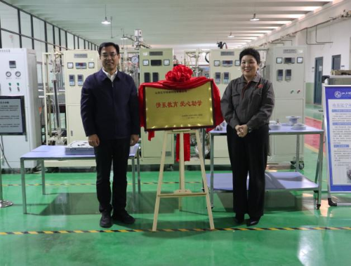 仪式最后,崔焕勇代表学校向侯宁董事长颁发捐赠证书并共同为“情系教育、爱心助学”牌匾揭牌。