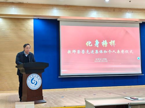 为弘扬新时代教师精神,彰显榜样力量,激励全院教师潜心育人、勇攀科研高峰,2月23日下午,化学化工学院2024年度“化身榜样”教师荣誉先进集体和个人颁奖仪式在图书馆报告厅隆重举行。学院领导班子成员和全体教职工参加颁奖仪式,仪式由学院党委副书记牟海萍主持。