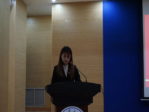 团委书记曹晓媛讲话,向参会的各位代表及全员青年学生致以诚挚的问候,回顾总结了去年的工作成绩和经验,提出学院工作与青年学生期待有一定差距,亟待加强学院建设,推动学院高质量发展再上新台阶。