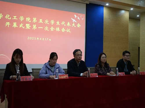 4月17日下午,化学化工学院在逸夫图书馆报告厅举行第五次学生代表大会,学院党委书记王介忠、学院党委副书记牟海萍、学院团委书记曹晓媛、学生会指导老师魏飞,校学生会主席团成员管崧羽,学院124名学生代表参加大会。