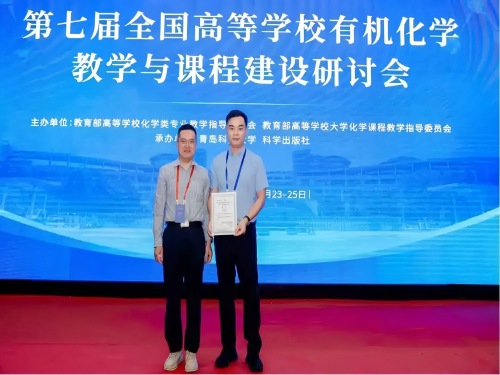 近日,由教育部高等学校化学类专业教学指导委员会和教育部高等学校大学化学课程教学指导委员会主办,青岛科技大学和科学出版社联合承办的《第七届全国高等学校有机化学教学与课程建设研讨会》在山东青岛顺利举行,我院有机化学教研室教师闫法超受邀参加本次研讨会,并作有机化学科研与教学转化主题报告。