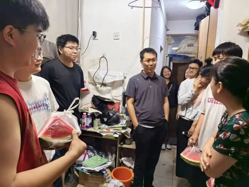 老师们带着解暑西瓜,逐间走访毕业生宿舍。每推开一扇门,都传递着学院对学子们的牵挂;每一声问候,都饱含着师长们的深情厚谊。老师们与毕业生交谈,详细了解他们的升学就业情况,耐心倾听职业规划与未来目标,悉心解答同学们在学业、就业等方面的困惑,同时反复叮嘱同学们离校途中注意安全。