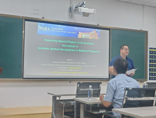 6月26日上午,学院邀请北京生命科学研究所/清华大学生物医学交叉研究院高级研究员李超博士来学院进行学术交流,并作题为“Expanding Natural Product Total Synthesis: Innovations in Synthetic Method Development & Medicinal Research”学术报告,报告会由学院院长杨乃涛主持。