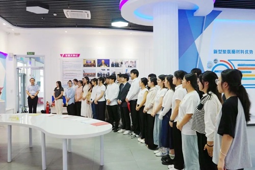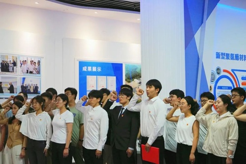 仪式结束后,新党员们集体参观了新型聚氨酯材料研究院实验室。